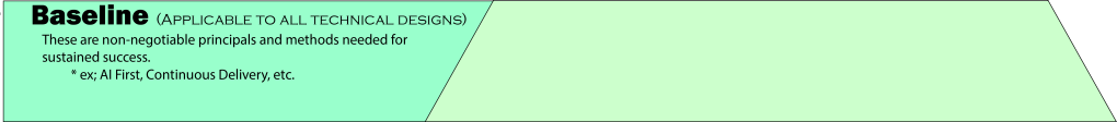 The Baseline layer consists of those non-negotiable practices and principals across both the project and the enterprise. Note that we don’t need to list out every enterprise principal here. Focus on the most relevant practices and principals that impact the context being modeled.