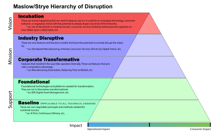 Maslow/Strye Hierarchy of Disruption for measuring the impact of digital transformations.